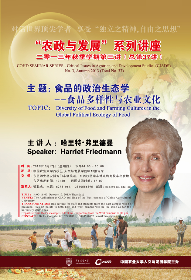 主讲人:哈里特•弗里德曼,加拿大多伦多大学社会学系与国际研究中心教授