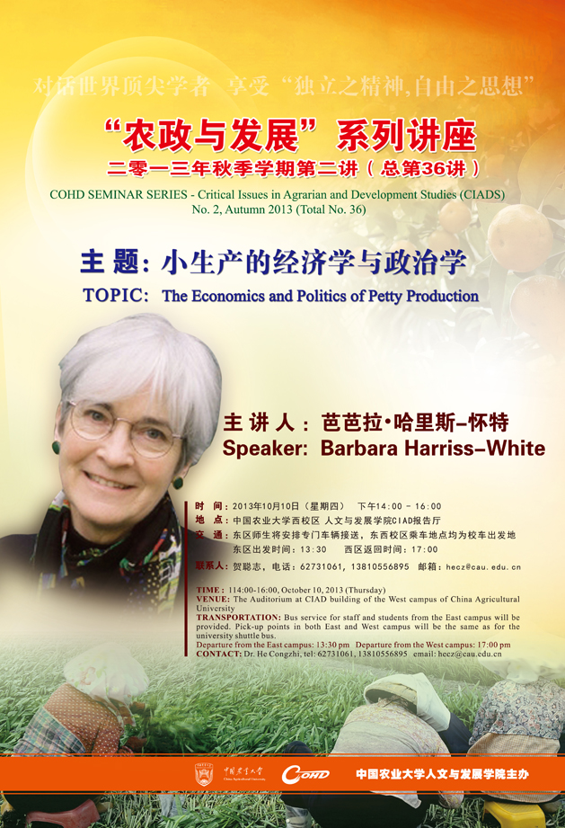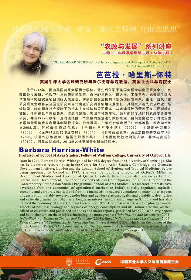 主讲人:芭芭拉·哈里斯-怀特,英国牛津大学区域研究所与沃尔夫森学院教授,英国社会科学院院士