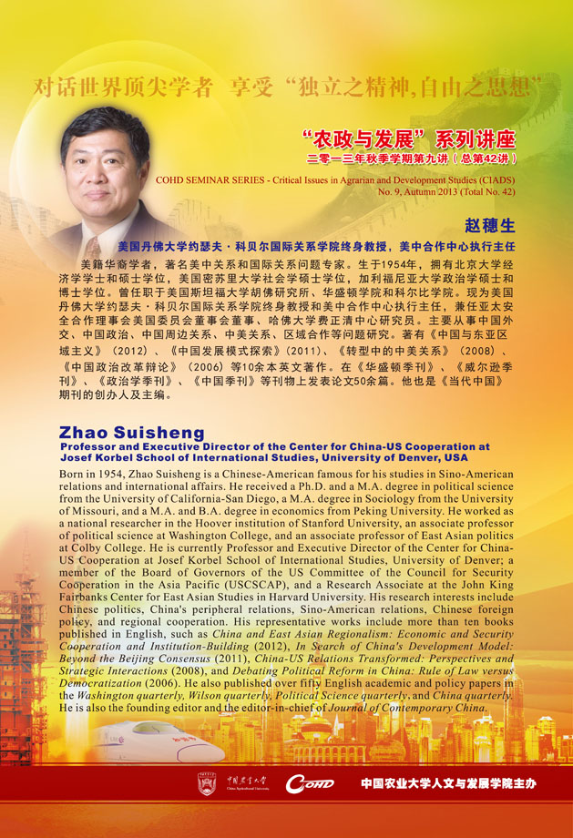 SPEAKER: Zhao Suisheng, Professor and Executive Director of the Center for China-US Cooperation at Josef Korbel School of International Studies, University of Denver, USA