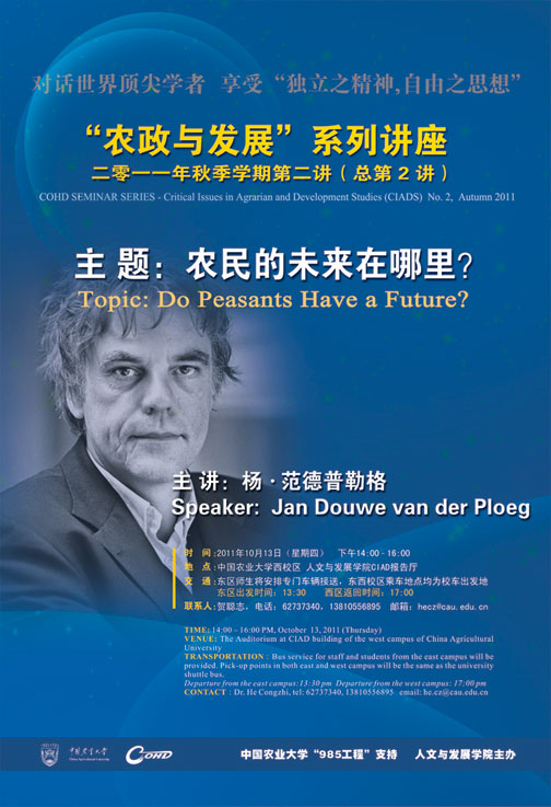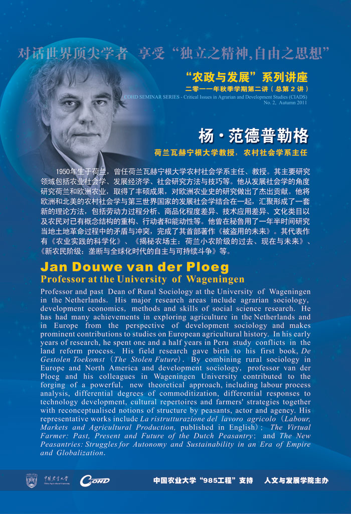 主讲人:杨·范德普勒格,荷兰瓦赫宁根大学教授,农村社会学系主任