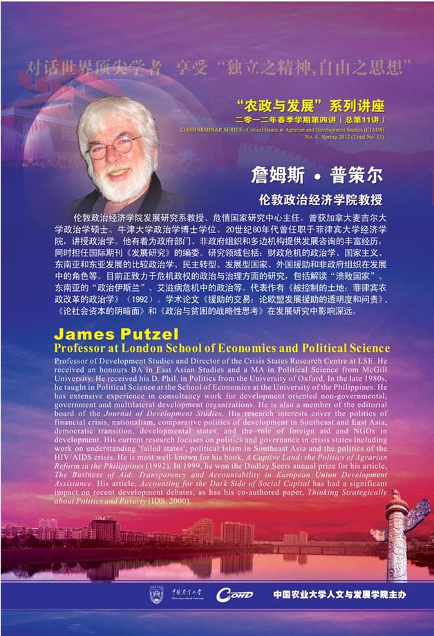 SPEAKER: James Putzel, Professor at London School of Economics and Political Science