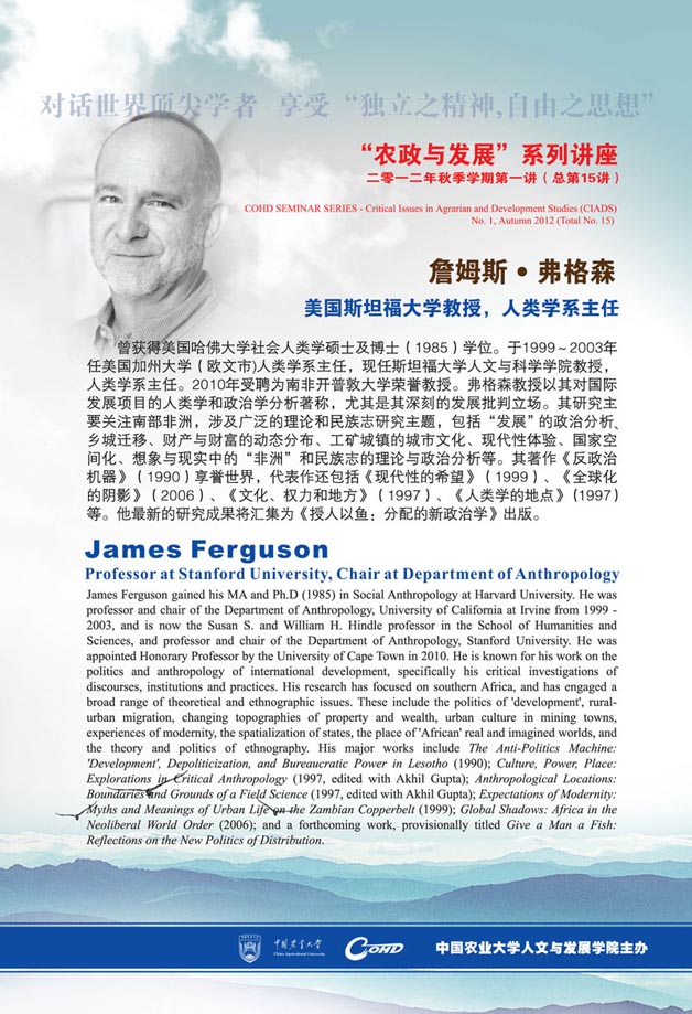 主讲人:詹姆斯·弗格森,美国斯坦福大学教授,人类学系主任