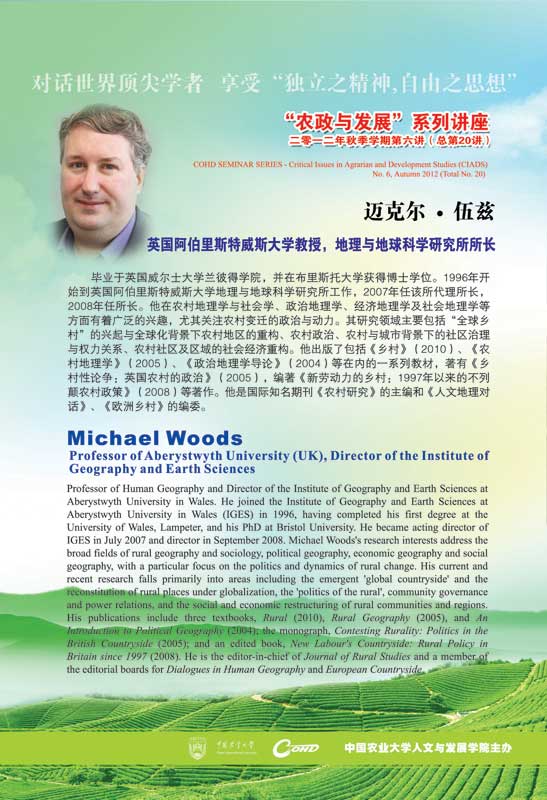 主讲人:迈克尔Ÿ伍兹,英国阿伯里斯特威斯大学教授,地理与地球科学研究所所长