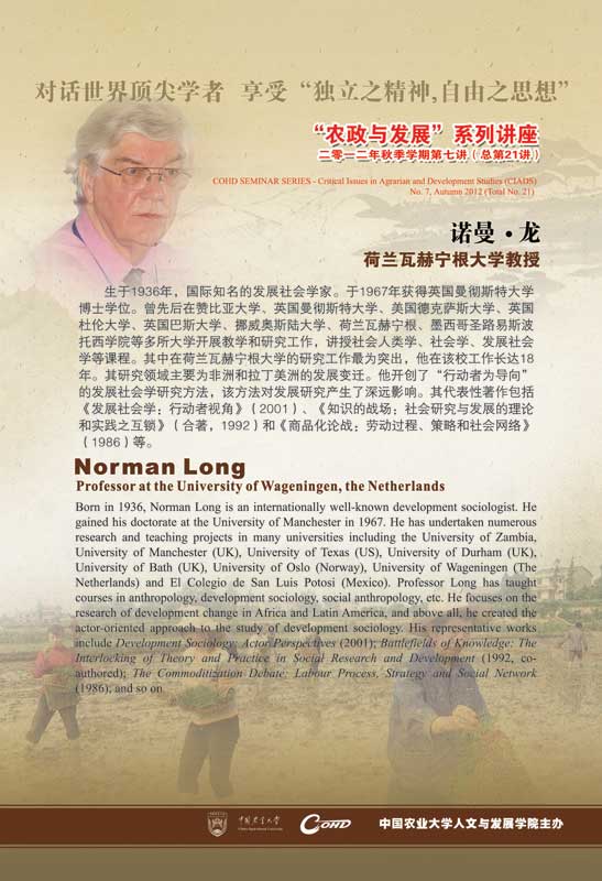 Speaker: Norman Long, Professor at the University of Wageningen