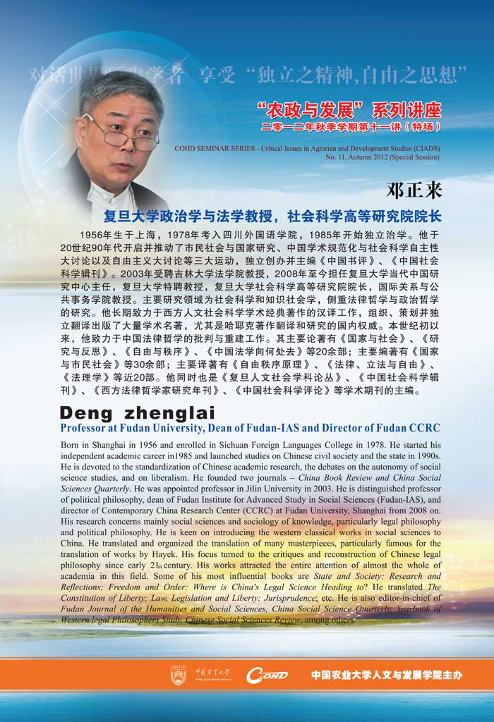 【农政与发展】系列讲座 2012年秋季学期第十一讲(特场)