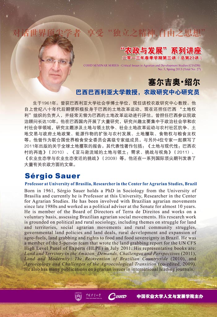 主题:土地斗争——巴西的土地改革与社会运动 Topic: Struggles for Land - Land Reform and Agrarian Social Movements in Brazil |