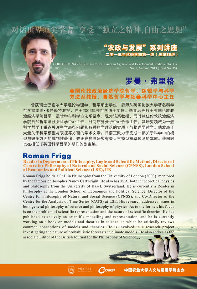 主讲人:罗曼·弗里格,英国伦敦政治经济学院哲学、逻辑学与科学方法系教授,自然哲学与社会科学中心主任