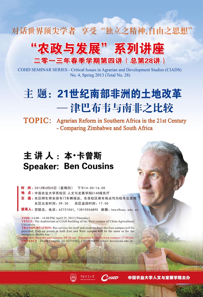 主题:21世纪南部非洲的土地改革——津巴布韦与南非之比较 Topic: Agrarian Reform in Southern Africa in the 21st Century - Comparing Zimbabwe and South Africa |