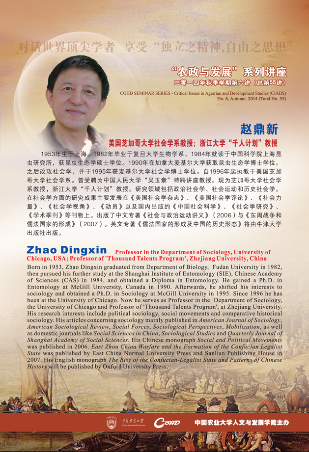 SPEAKER: Zhao Dingxin, Professor in the Department of Sociology, University of Chicago, USA; Professor of ‘Thousand Talents Program’, Zhejiang University, China