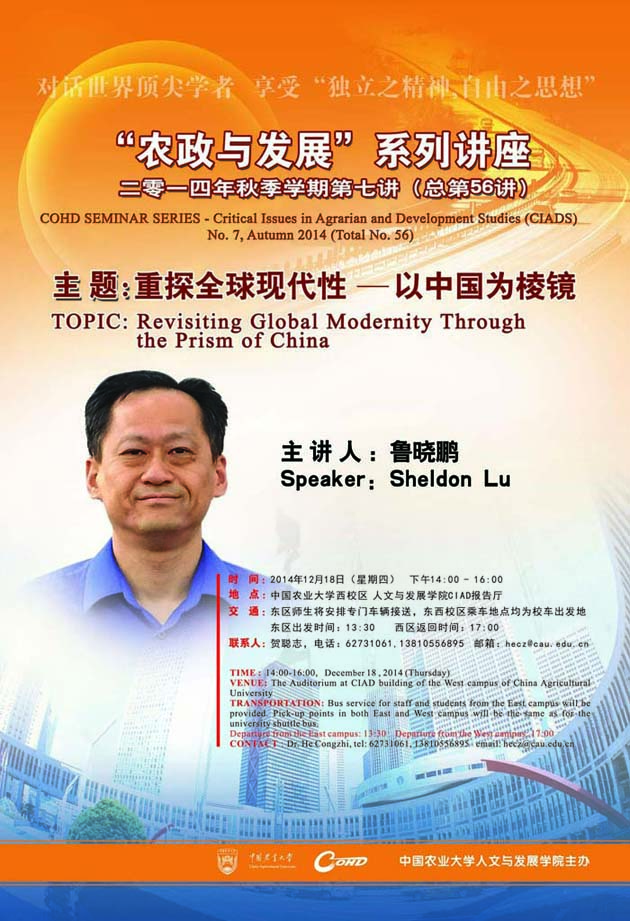 【农政与发展】系列讲座(56):重探全球现代性——以中国为棱镜Revisiting Global Modernity Through the Prism of China