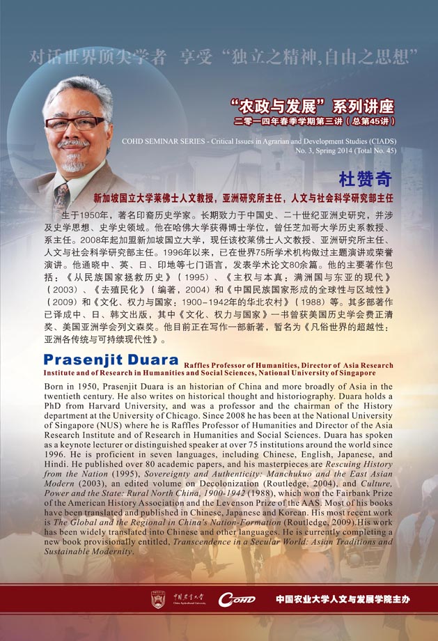 【农政与发展】系列讲座 2014年春季学期第三讲(总第45讲)