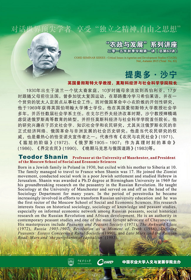 主讲人:提奥多·沙宁,英国曼彻斯特大学教授,莫斯科经济与社会科学学院院长