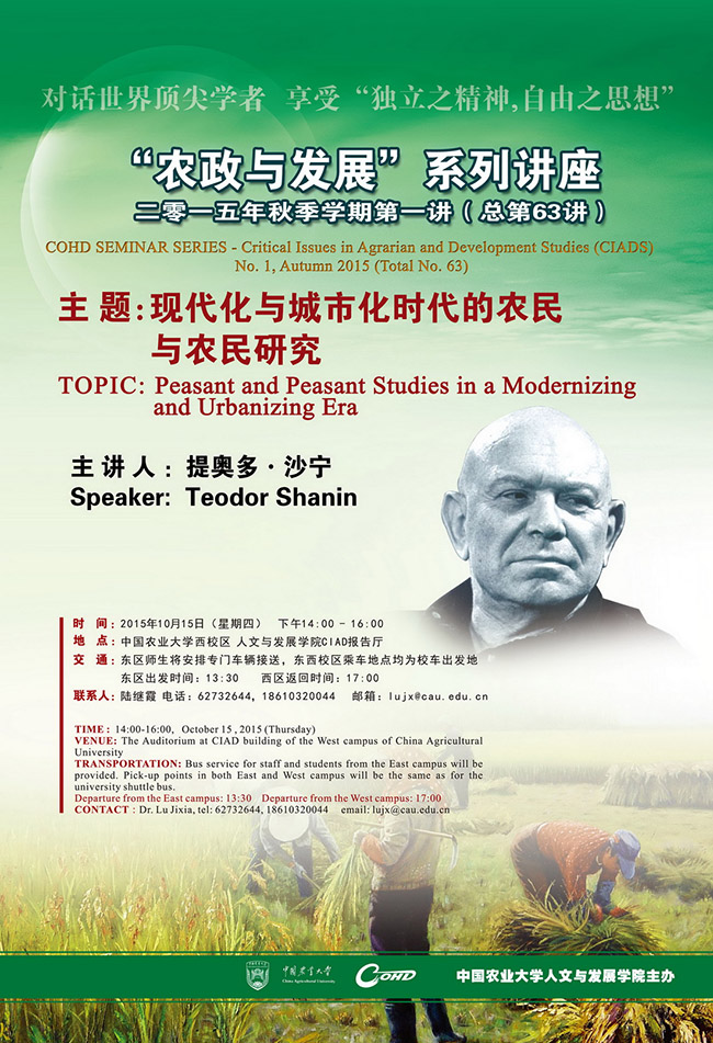 【农政与发展】系列讲座 2015年秋季学期第一讲(总第63讲)