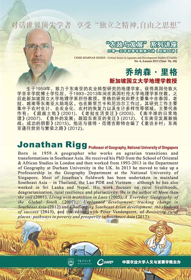SPEAKER: Jonathan Rigg, Professor of Geography, National University of Singapore