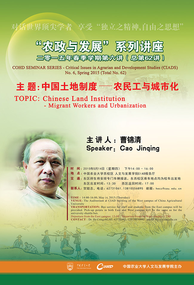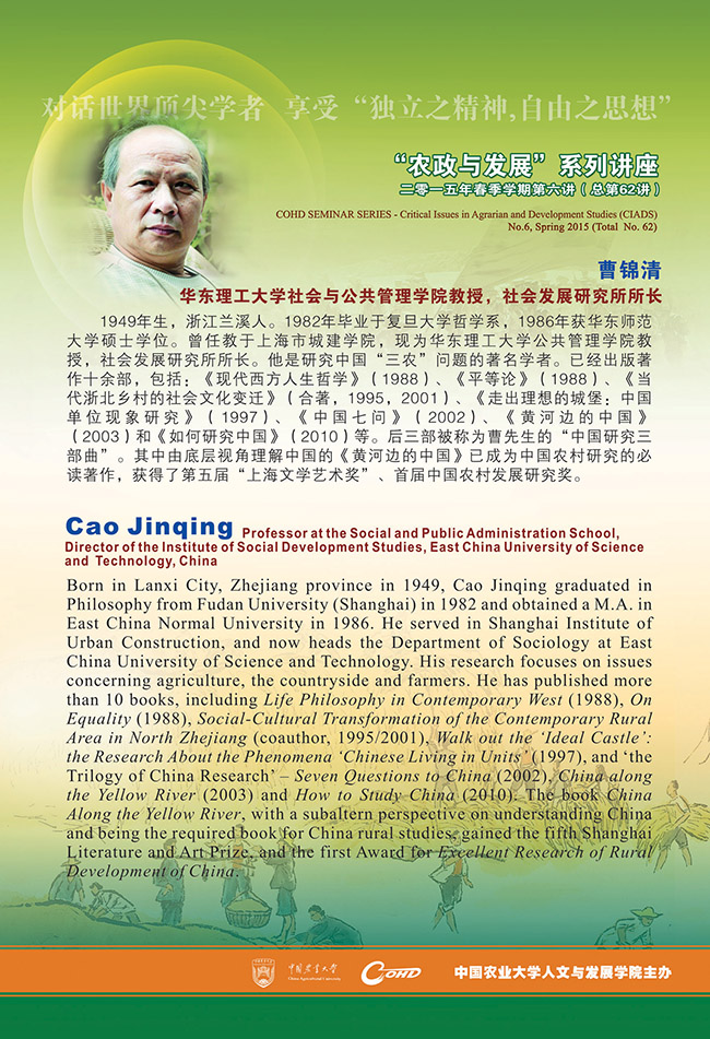 【农政与发展】系列讲座 2015年春季学期第六讲(总第62讲)