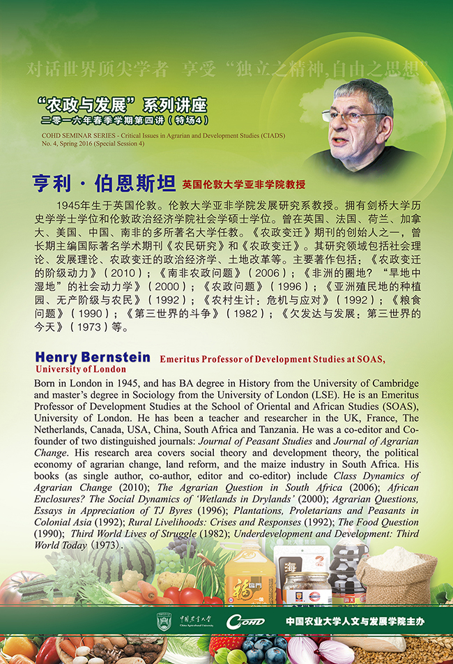 SPEAKER: Henry Bernstein,Emeritus Professor of Development Studies at SOAS, University of London