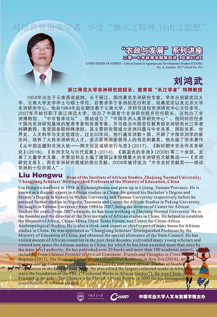 【农政与发展】系列讲座(81):刘鸿武:中非在发展知识领域的独特探索与互鉴——我的个体经历与思考