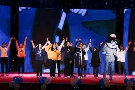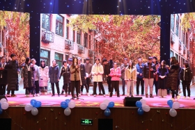 作为晚会的压轴节目,由全体演职人员为大家倾情演唱歌曲《人发欢迎你》。这首歌是由《北京欢迎你》改编而成,在编词阶段,各部门集思广益最终形成一份满意的定稿。“人发欢迎你”,每一句歌词都汇聚着所有演职人员的辛苦与付出,凝集着学院对广大人发学子的美好祝愿和期望。
