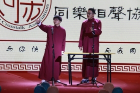 晚会上的语言类节目也是一大亮点。法学171班的小品《山匪拜寿》、同乐相声会的改编作品《智取威虎山》和行知剧社的话剧《告白》中密集的包袱和真挚的情感,都获得了在场的同学和老师们的好评。为了营造良好的舞台效果,每一次情景转变都需要表演、灯光效果、LED背景控制和背景音乐的多方配合,舞台上一次次的喊停,一次次的调试都在为最终表演的顺利展演做好准备。为了迎合晚会的氛围,同学们在编剧上也投入了不少心思。发展161班的赵泽宇谈到,《告白》原本是一个以悲剧结尾的短剧,为此他们稍加修改,将结尾改为男女主角相似一笑,留给观众美好的遐想,而最让演员们在意的还是演出效果能够让观众们满意。