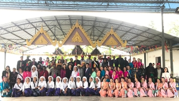考察团还去了傣族村寨纳卡,以舞会友,感受傣族特有的乡土风情。纳卡村的女支书向留学生们介绍了村庄的发展情况,并分享了自己在村庄治理中的工作经验,留学生们积极提问,并与他们国家的农村治理和妇女在发展中的地位作比较,大家畅所欲言,在欢声笑语中结束了国际交流。