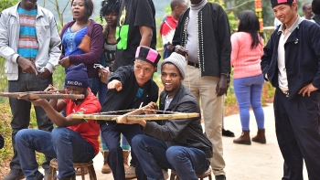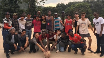 接来下两天的行程更为丰富有趣。雨林探秘时,留学生们载歌载舞,融情自然,村民们则在目的地准备了瑶族长桌宴,大家共进午餐。踩高跷、编竹筐、织瑶布、包瑶粽、射弩等传统手工艺体验活动,让留学生们惊叹于中华民族古老的生存智慧,称赞这种绿色的生产生活方式。留学生还和村民们进行了一场精彩的篮球友谊赛,双方激战一个小时,最终留学生队险胜。